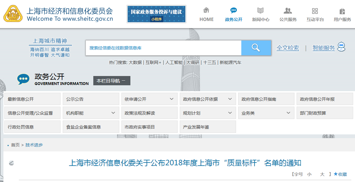 上海市經(jīng)濟信息化委網(wǎng)站公示信息