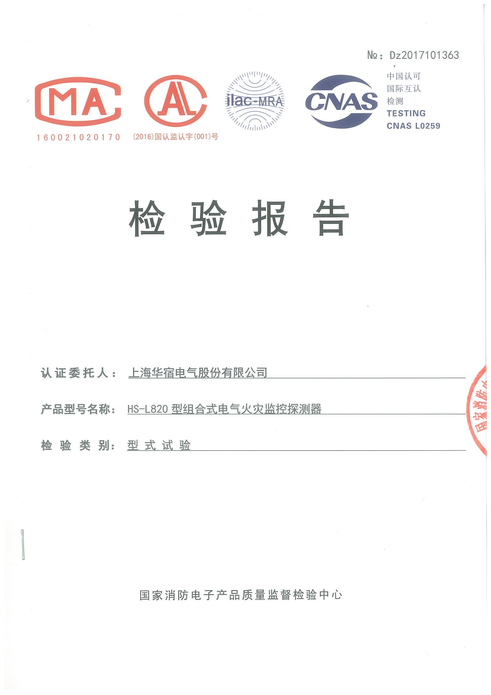 HS-L820組合式電氣火災監(jiān)控探測器檢驗報告