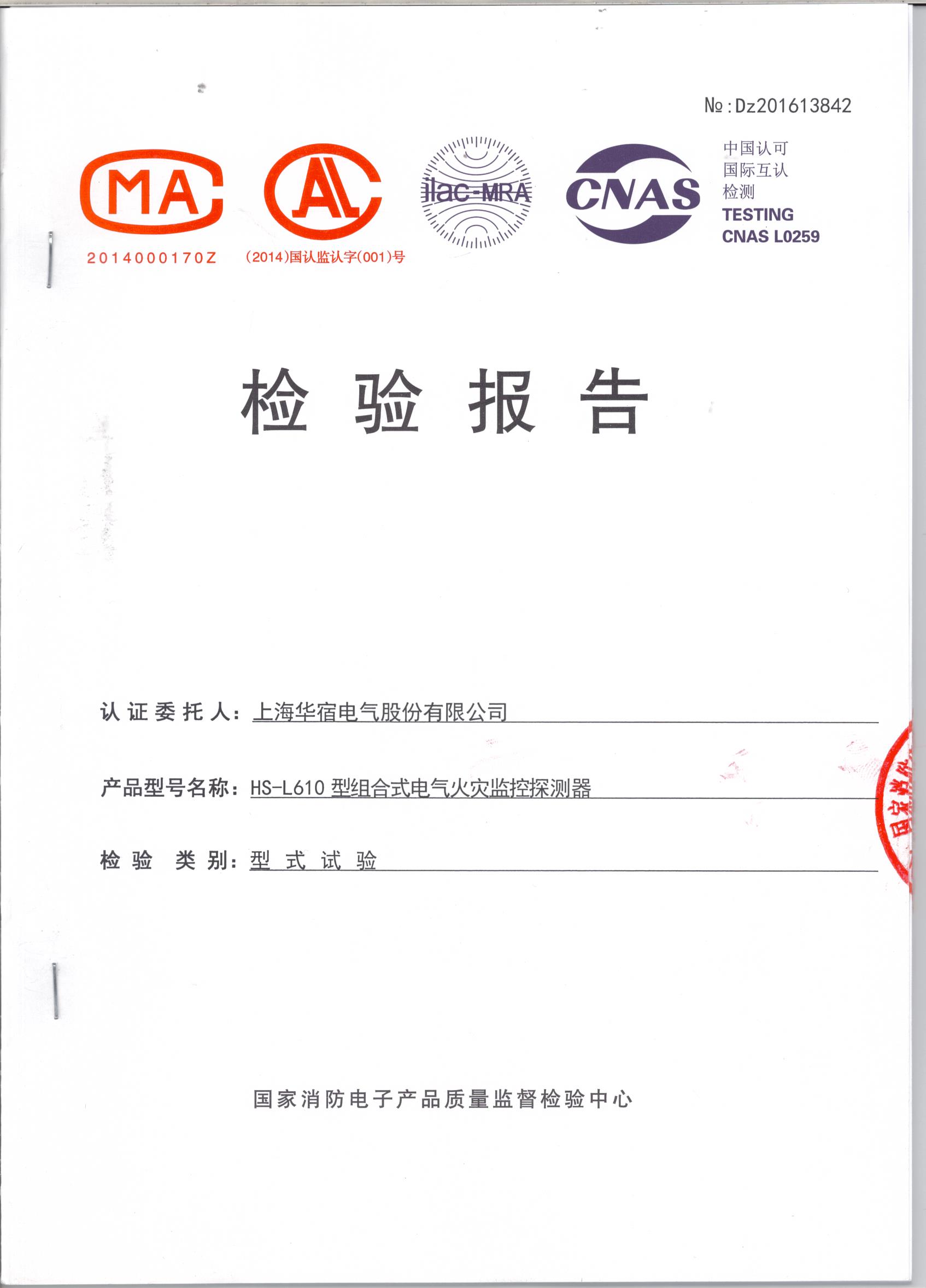 HS-L620型組合式電氣火災監(jiān)控探測器檢驗報告