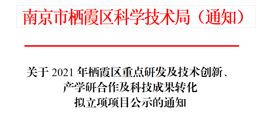 我司成功申報2021年棲霞區(qū)科技成果轉(zhuǎn)化項目