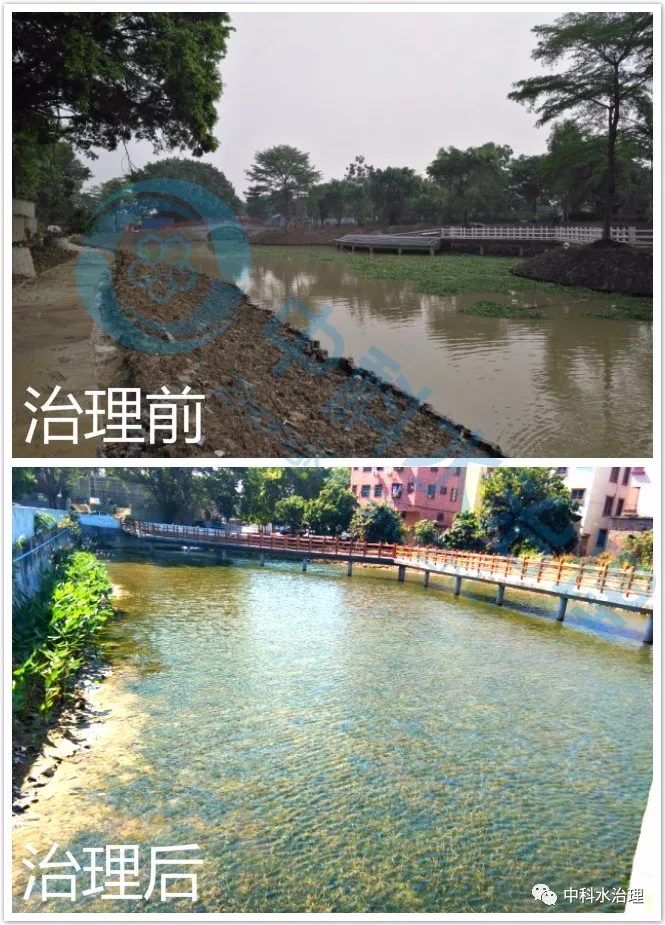項(xiàng)目完成后,水質(zhì)由原先的劣Ⅴ類提升至Ⅲ類-Ⅳ類,觀感清澈,水下植物群落清晰可見,清澈見底。