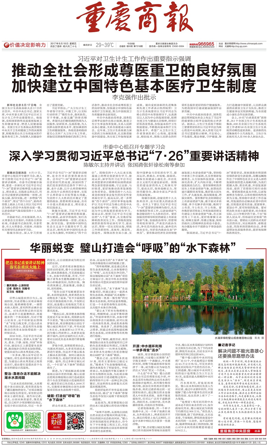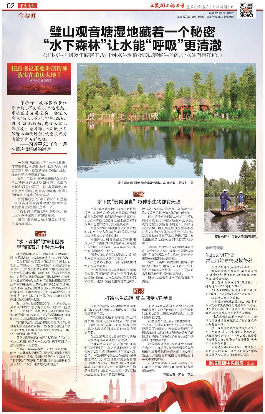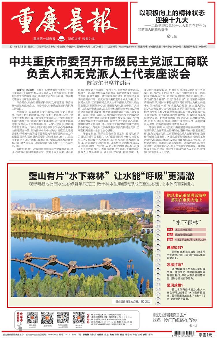 重慶日?qǐng)?bào)、重慶之聲、重慶電視臺(tái)、重慶晚報(bào)、重慶晨報(bào)、重慶商報(bào)、華龍網(wǎng)、《當(dāng)代黨員》雜志社等市級(jí)主流媒體記者,來(lái)到觀音塘濕地公園,實(shí)地探訪了“水下森林”建設(shè)情況,采訪了項(xiàng)目設(shè)計(jì)施工單位【南京中科水治理股份有限公司】工作人員。觀音塘濕地公園項(xiàng)目是由中科水治理傾力打造的精品水生態(tài)修復(fù)項(xiàng)目,也是重慶市首個(gè)生態(tài)文明建設(shè)示范基地。