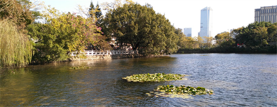 南南湖水面約12萬平方米,水深1.6 m 至2.2 m 之間。由于葉綠素和懸浮物濃度高,南湖水色常年為黃綠色,透明度低,感觀很差。屬劣V類水質(zhì)。