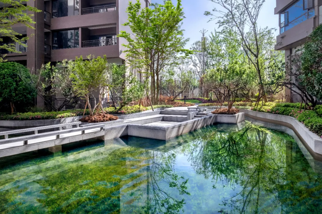 一池水,一片海,它是我們心中美好的水岸島居生活的一個(gè)真實(shí)夢(mèng)境。設(shè)計(jì)師以現(xiàn)代的手法構(gòu)圖溪岸,融合泛會(huì)所、溪流、湖心島等原生態(tài)水岸景觀,再現(xiàn)“岸梅溪春又生”的自然時(shí)尚居所,給人以森林般的水岸島居體驗(yàn),展現(xiàn)島居住宅和諧精緻之美。